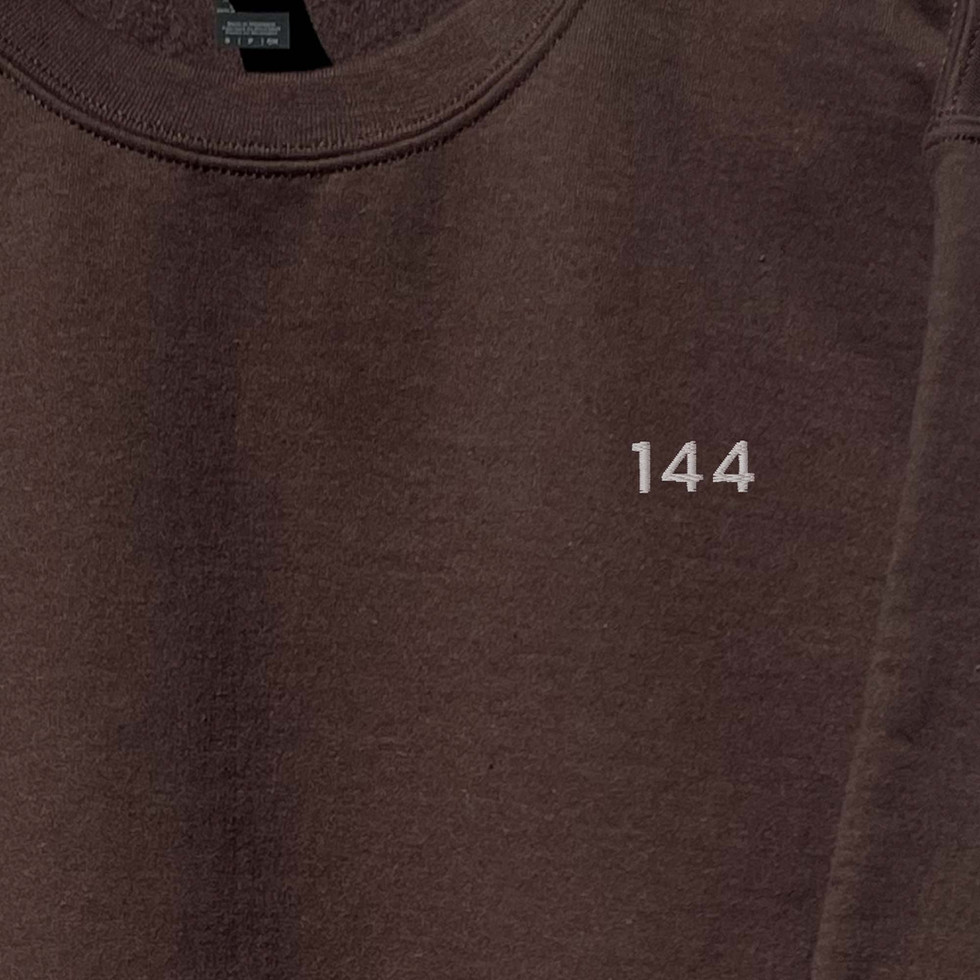 An embroidered sweatshirt featuring the most powerful number of the Light. When you see 144, that’s the Light of God. The Light of the universe.